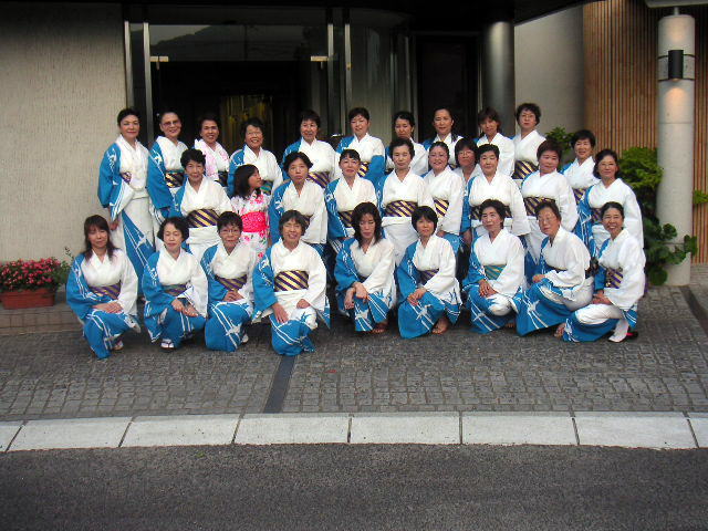 踊りには、揃いのゆかた姿の牧石地区婦人部 (30名)と、中原町内会の男性連(14名)も参加し