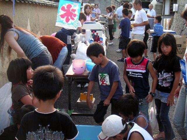 町内会の出店に 業者の夜店も加わって午後8時ごろまで賑やかで、ビール、ジュースは売り切れ、アイスクリーム、フランクフルトや焼き鳥もよく売れたようです。