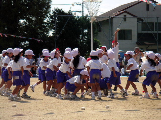 1年生の ポンポン玉入れ競技。