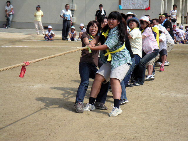 全学年が 紅白に 分かれ、 「まわせ! まわせ!」