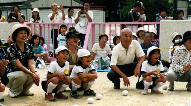 4,5歳児、おじいちゃん、おばあちゃんと一緒に 玉入れをしました。