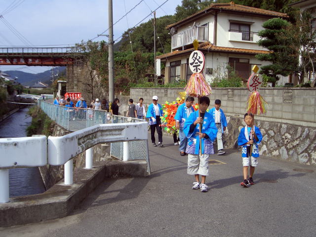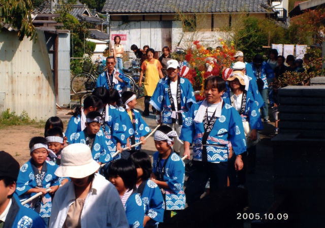 午後からは、子供を主体に 「ダンジリ」 を引いて町内を一周し、その足で諏訪宮に参拝し 全員の健康を祈願して お祭りの行事は修了しました。