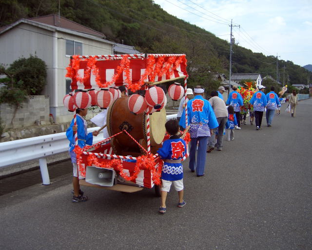 樽神輿と太鼓で 「備前太鼓歌」 の テープを流しながら 太鼓を叩き 賑やかに町内を 練り歩きました。