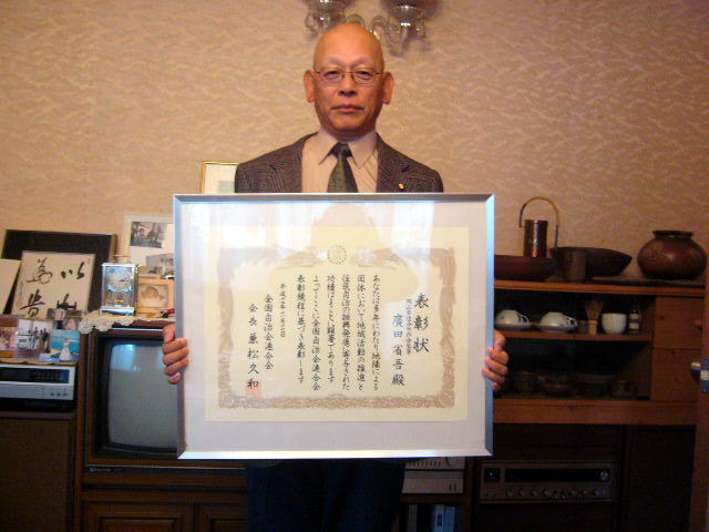 牧石学区連合町内会の 会長 廣田省吾さんは 全国自治会連合会 会長表彰を 受けられました。