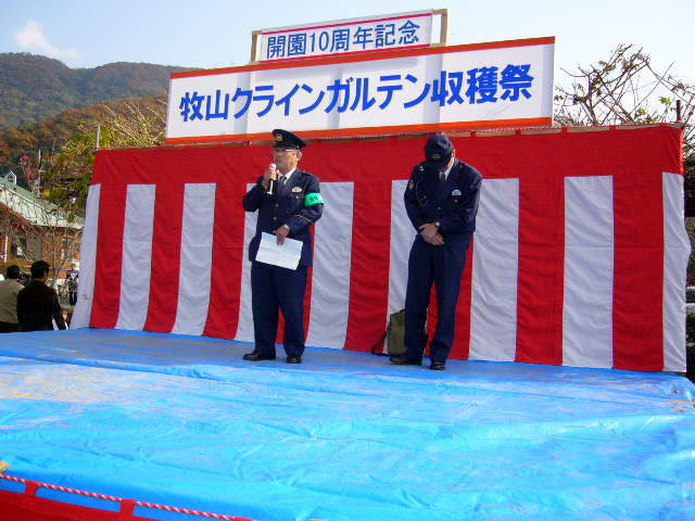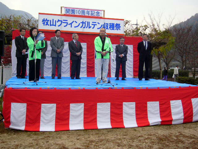 牧山クラインガルテン収穫祭実行委員会の 桑原委員長の挨拶と 来賓の方々の ご挨拶で 収穫祭が始まりました。 |