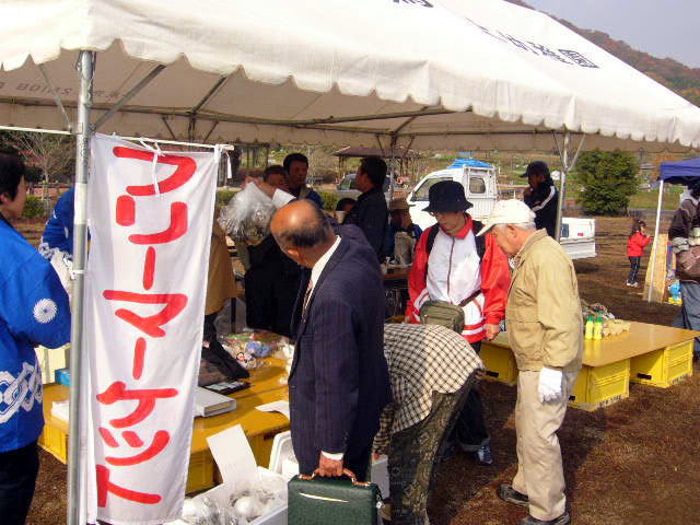 会場では、青空市・フリーマーケットが開催されており、魚屋さん・テンペねぎ焼き・おでん・うどん他たくさんのお店がにぎわっていました。