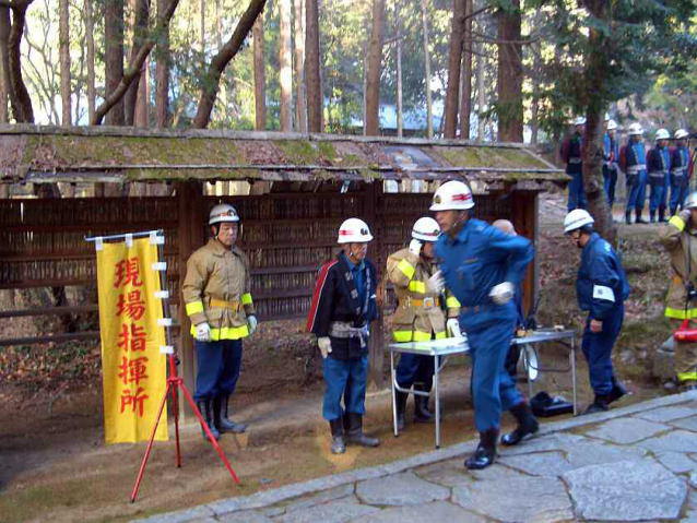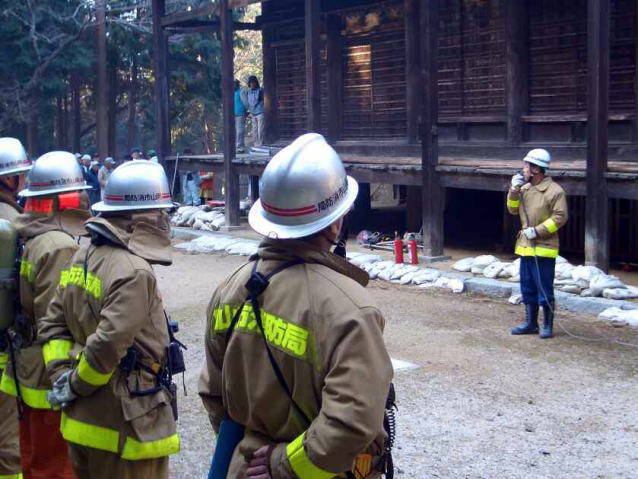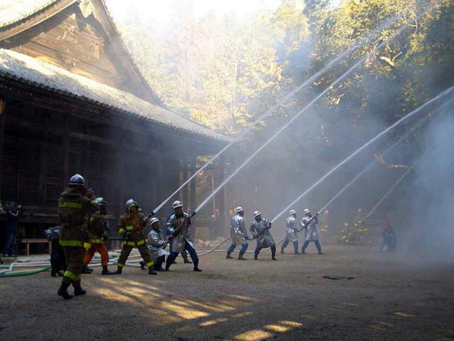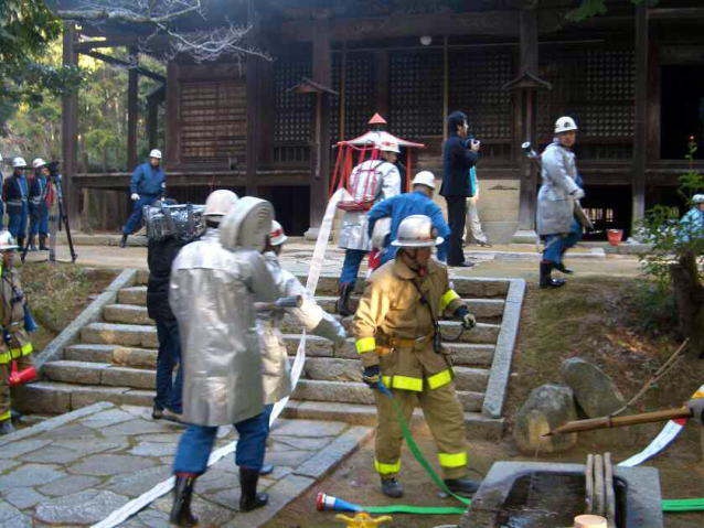 文化財である金山寺で 消火訓練を行なうものです。