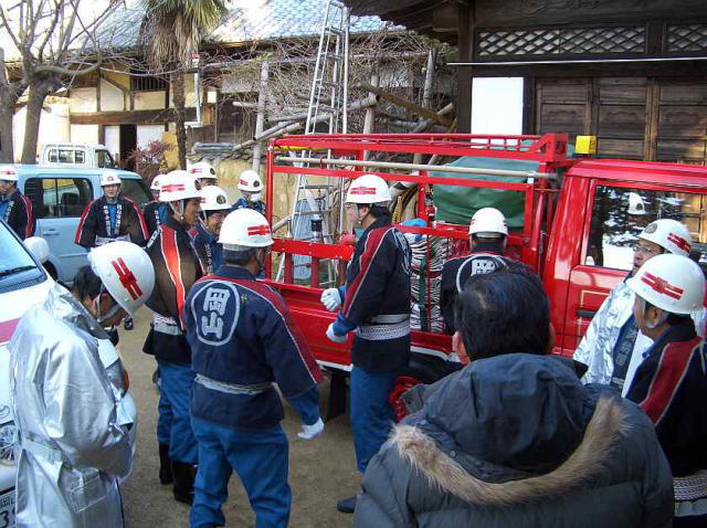 地元消防団が参加して 金山寺での消防訓練