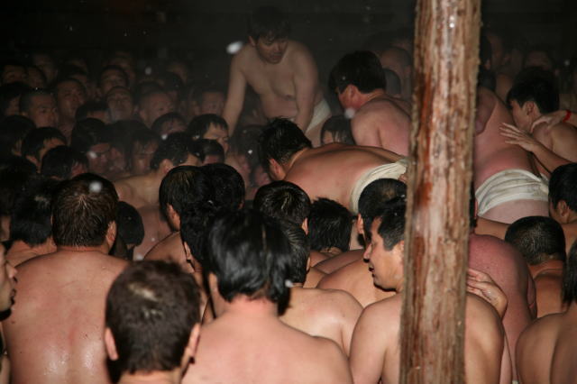 | 厳しい寒さでしたが、裸たちの周りには湯気も立ち上がる熱気でした。 |