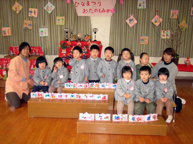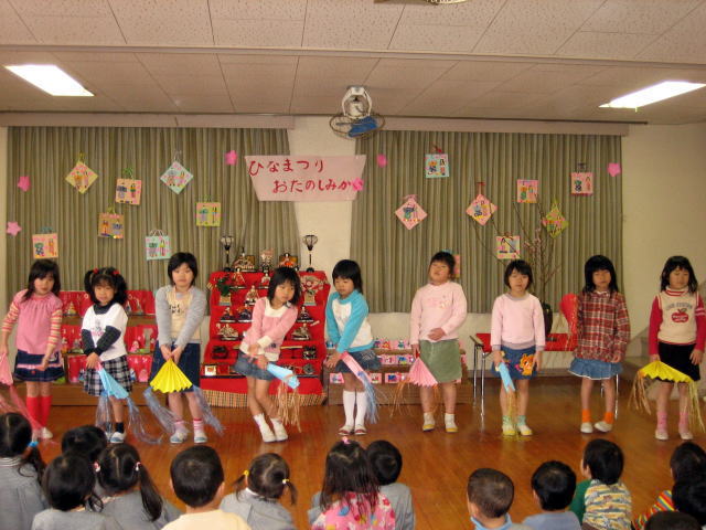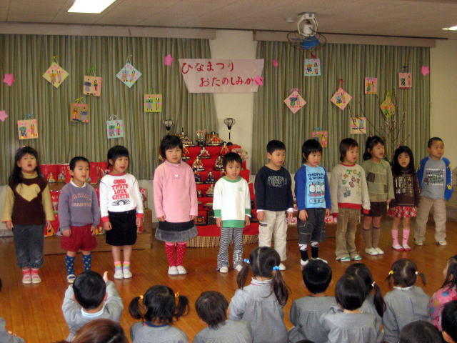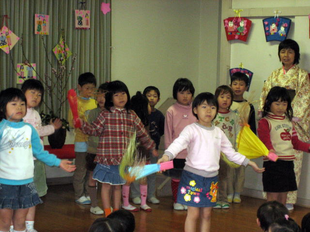 女の子達はスカート姿で踊りを披露したり みんなでひなまつりの歌をうたい