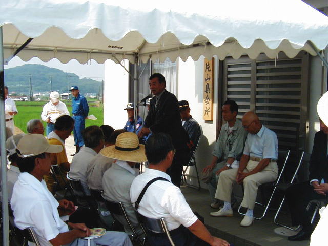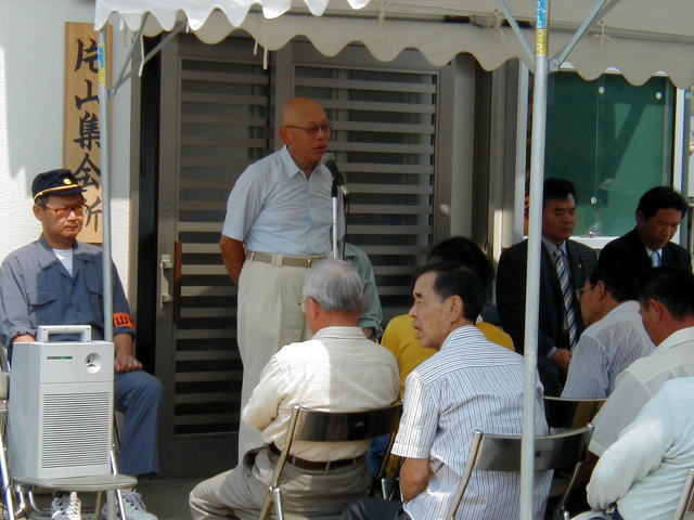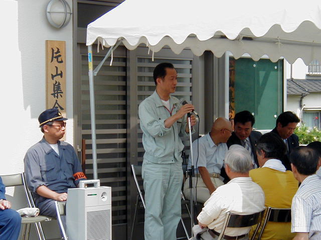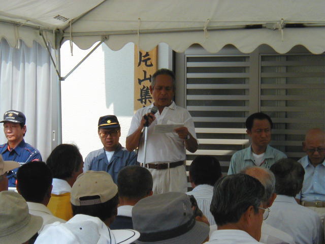 | 須々木 防災会長の開会宣言で、完成記念行事が始まりました。 |