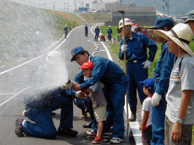 | 牧石消防団の 放水訓練です。 日頃からの訓練は さすがでした。 |