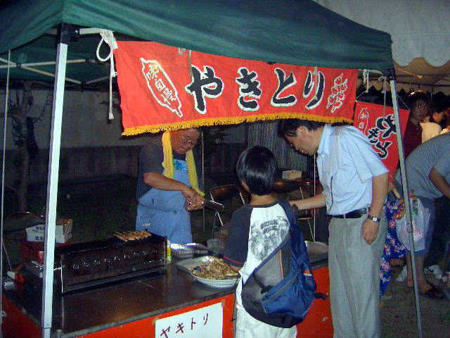 商人の金魚すくい、綿菓子、「やきとり」 に ゲーム売りの 夜店まで来て、