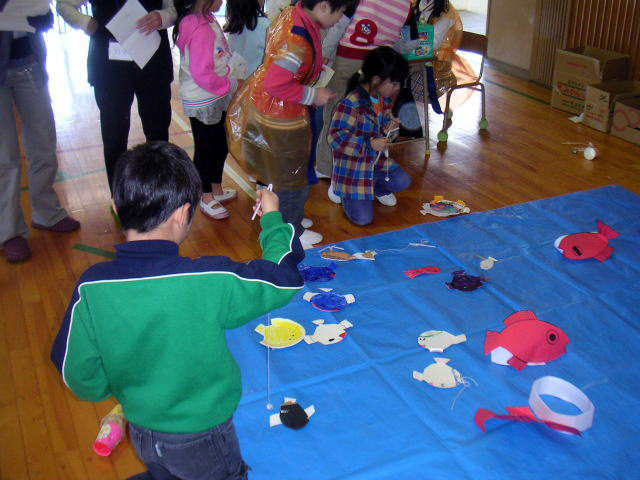 磁石を利用した 「チャブチャブ魚つり」 でした、でも なかなか・・・。 |