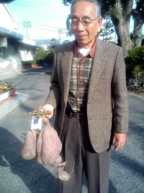 この芋を育てた 菊池 衛さん (河本町内 在住) |