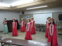 | 最後に「東日本被災地応援ソング― 花は咲く」を教えてもらいながら みんなで踊りました。 |