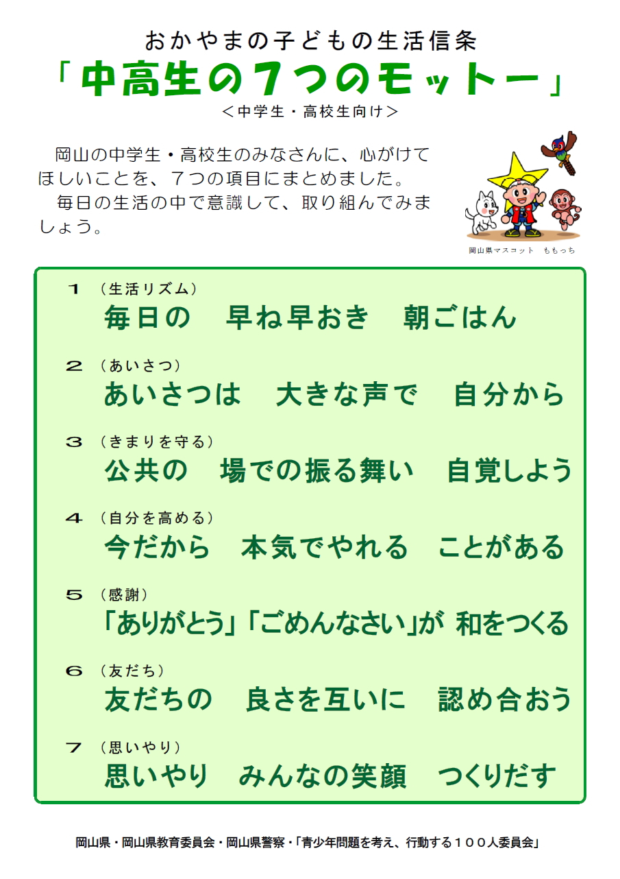 このような情勢を踏まえ、県警察等では平成27年度4月1日から少年の規範