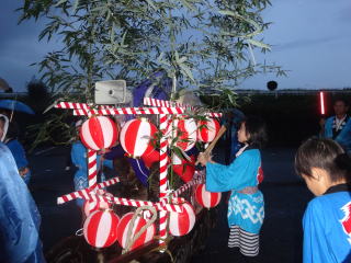 だんじり引き回しの後はポンプ場で栗やジュースが配られました。