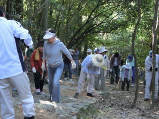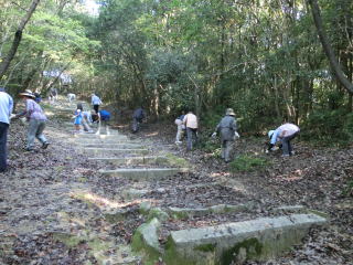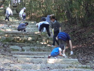 積もりにつもったチリや伸び放題の草花もたちまちきれいな参道と化しました