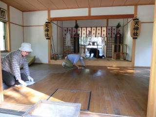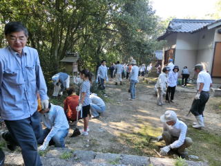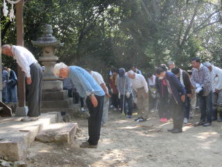 三野天神社の秋祭りに先立ち、参道の清掃が行われました