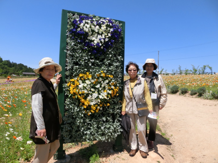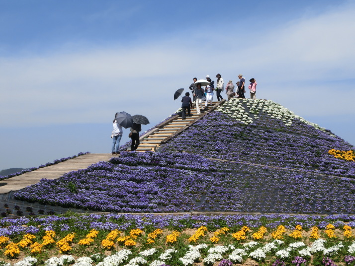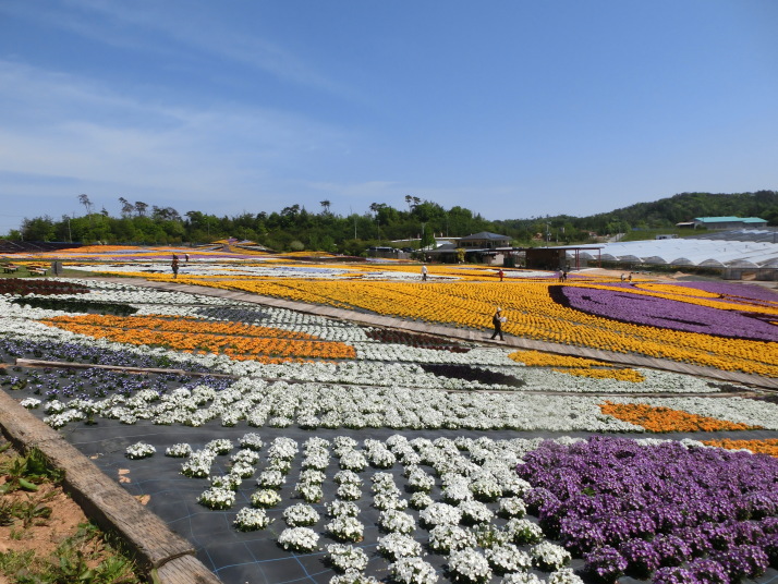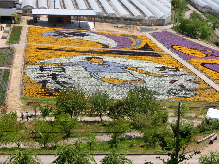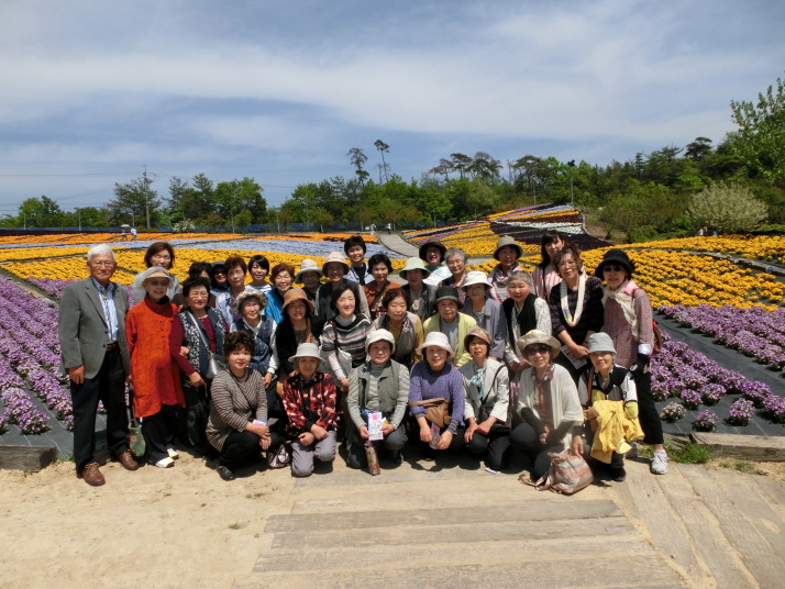 5月11日(日)、恒例の町内行事婦人部親睦会ツアーが行われました 向かった場所はお花畑で有名な広島県の「世羅高原」です 今は盛りと咲き誇る花々に迎えられて、しばしの散策をたのしみました 高台から見下ろす花畑は眺望抜群で、みごとに彩られた花のアートは 観る人の目を楽しませてくれます お食事処「せらワイナリー」でお腹を満たし、隣接する売店でしっかりと お土産も仕入れました 高校駅伝で名を馳せる世羅高校のご当地らしく、駅伝のポスターが あちこちで見受けられました 写真をクリックすると拡大されます 2014./5/11 田中絹子 記