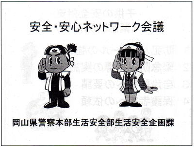 | 平成26年8月28日(木)、岡山市役所にて、岡山市安全・安心ネットワーク連絡協議会 総会が開催されました。 最初に広島県広島市のの土砂災害で亡くなられた方々の ご冥福のために黙祷しました。 目黒会長に続いて大森市長が、 広島市という身近で起こった大雨による土砂災害、 倉敷市で下校時の児童が不審者に誘拐された事件、 また、今年12月にオープン予定の岡山駅南の巨大商業施設イオンによる影響など、 身の周りには不安要素や課題が山積していること、 各地域の安全・安心ネットワークの活動が ますます重責を増していることなど、あいさつされました。 議事に入り、今年度の役員選出後、 講演会では「岡山県内の犯罪状況について」 岡山県警察本部 生活安全企画課 警視 中西 豊氏のお話。 報告事項では