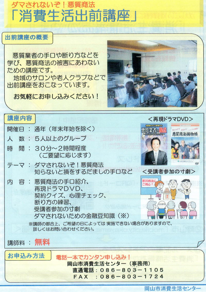 | 悪徳商法や詐欺被害についての資料の一部 | |
