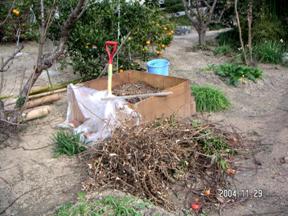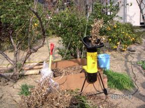 今年は暖冬なのでしょうか、12月だと言うのに温かい日が続き野菜の生育がどんどん進んでいます。例年でしたら、秋に植え付けたり、種まきした冬物野菜の収穫を楽しむ時期です。さて、冬の家庭菜園の主な作業は、来春に備えた準備作業です。その一つ「エコ堆肥作り」を紹介します。堆肥は、菜園の元肥として、有機肥料として重要な肥料で、野菜は甘みを増し、栄養も豊富になります。通常堆肥は、稲わら、落ち葉で作りますが、庭木の剪定くず、庭の落ち葉、毎日の生ゴミで作ってはどうでしょうか。庭木の剪定くずは、シュレッダー(下段写真)で粉砕します。落ち葉はビニール袋に貯めておきます。簡単な囲いを作り、剪定くず、落ち葉を敷き詰め、生ゴミを加え層を作って行きます。6ケ月もしたら立派な「エコ堆肥」の出来上がりです。