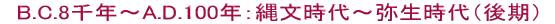人類が定住するようになって営々と続いたそのような平和な時代は、今から約2500年前から突然様子の違った時代へと変革を遂げることになります。東京の弥生町でみつかった土器が、従来のものと明らかに違いがあることから、学者はこれを弥生式土器と名づけこの時代を弥生時代と呼ぶようになるのです。 |