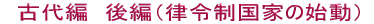主な律令としては、近江令・大宝律令等があり、これ等によって法律による国家運営、すなわち律令制国家が、動き出してゆく訳です。 |