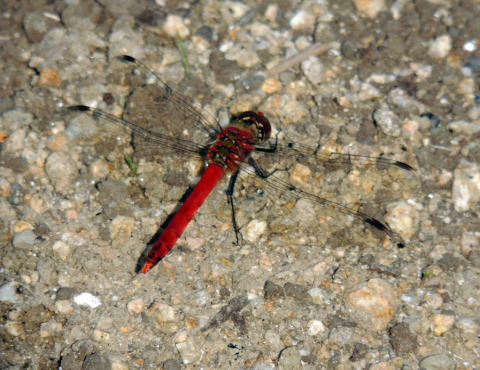 ナツアカネは6月上旬ごろ羽化し,日の当たらないような木陰で過ごし,秋になると真っ赤に色づいてきて,遅いものは12月ごろまで見られます。