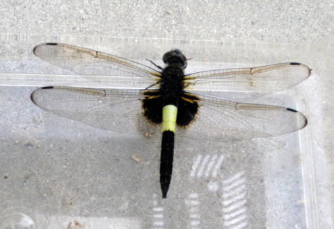 分布は,本州・四国・九州・沖縄の平地から低地にかけて,沼や池や用水路に6月〜10月頃まで普通に見られる。この写真は近くの用水上を飛んでいたのを捕獲して虫かごに入れて撮影をしたものです。 |