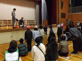 | 内容 | 鯉山学区防災訓練 岡山市立鯉山小学校で鯉山学区防災訓練が開催されました。 体育館内でAEDと心臓マッサージの指導、非常時持出品の説明、ランチルームでDVD「もし今、地震が起きたら~命を守る備えと退避行動~」の視聴、中庭で応急給水体験、運動場で起震車による地震体験を行いました。起震車体験では震度6になるとものすごい揺れで怖かったです。 防災訓練を通して防災意識が高まったと思います。 鯉山学区連合町内会 会長 練尾賢治 |