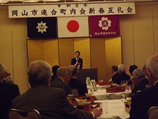 | 内容 | 岡山市連合町内会総会 ピュアリティまきびで岡山市連合町内会総会が大森岡山市長、田口岡山市議会議長を来賓として向かえ、氷見岡山市連合町内会会長のあいさつで開催されました。 鯉山学区連合町内会 会長 練尾賢治 |