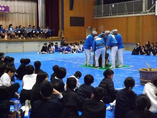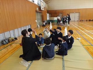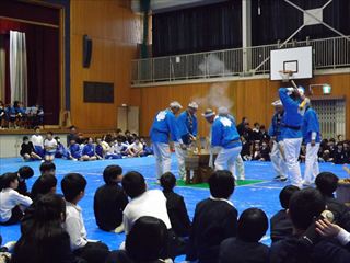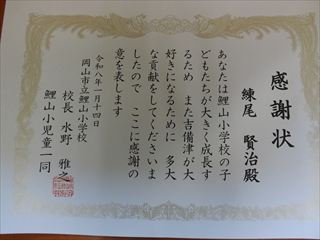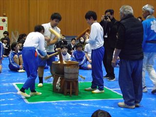 | 内容 | 三味線もちつき大会 岡山市立鯉山小学校体育館で、吉備津三味線もちつき保存会の方々と小学生、先生、保護者、地域の方々の協力でもちつき大会が盛大に開催されました。 水野校長のあいさつでもちつき大会の歴史について説明があり、映像を見ながらお話をされました。今回で30回です。コロナの時は3年間休みましたが三味線と歌とでけっこう賑やかでした。児童のみなさんも楽しそうでした。全員きな粉のもちを食べました。きな粉の匂いがして、おいしかったです。 その後、3年生が宮内踊り、吉備津音頭についての発表が行なわれ、全員で二重三重の輪になって踊りました。 最後に感謝の会で感謝状と児童のお礼の言葉が書かれたお手紙をいただきました。感動しました。 鯉山学区連合町内会 会長 練尾賢治 |