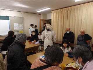 | 内容 | ホゴちゃん食堂 岡山市立高松公民館で「ホゴちゃん食堂」(高松更生保護女性会の主催)が開かれました。 部屋に入ると満員状態でした。空いた席がちょうどあったので友人と2人で座りました。メニューはふな飯です。久しぶりに食べました。ボリュームもけっこうあり、いろいろなものがあって美味しかったです。お汁のお代わりもありますよとのことでお代わりをいただきました。 月に一度第4土曜日に開かれているので又行こうと思います。 みなさん一度行かれてみてはどうでしょうか! (大人1人300円、子どもは無料です。) 鯉山学区連合町内会 会長 練尾賢治 |