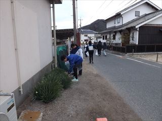 | 内容 | 高松学区内3駅周辺清掃活動 JR吉備津駅周辺清掃活動を岡山市立高松中学校生徒先生方、鯉山小学校、幼稚園の先生方と地域の代表者、保護者の参加で朝8時から約40分間行いました。ゴミの分別をして終えました。ゴミは少なくなかったです。 鯉山学区連合町内会 会長 練尾賢治 |