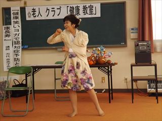 | 内容 | 老人クラブ「健康教室」 鯉山コミュニティハウス2階で老人クラブ主催の「健康教室」で岡山県笑いヨガ協会代表理事万代京子講師による効果的な独自の技法で、「ユニーク笑いヨガ万代流の笑って楽しく笑いは体にいいよ」で参加者全員体を動かして大いに笑って気分良く過ごしました。 笑う事(笑顔を作る事)で脳中のエンドルフィンという科学物質が出て、心理状態が良くなり、1日が気分良く、元気に過ごすことが出来ます。 鯉山学区連合町内会 会長 練尾賢治 |