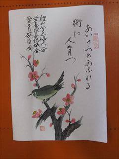 | 内容 | お寿司をいただく 鯉山学区栄養改善協議会、婦人会、愛育委員会の協力で作られたお寿司をいただきました。毎年独居の高齢者に配られています。絵と文は吉備津に住まわれている池上さんの作品です。いつも素晴らしい絵と言葉が書かれています。 私の店に展示しています。 鯉山学区連合町内会 会長 練尾賢治 |