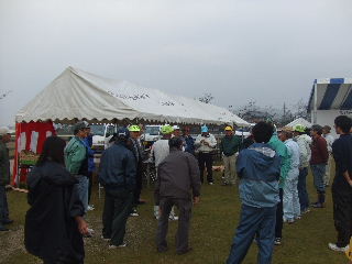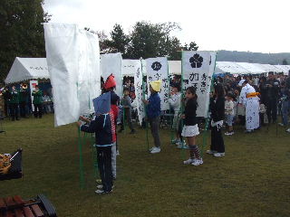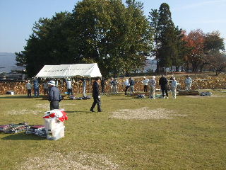 | 平成20年11月16日日曜日 関係者は、午前8時に集合しました。 直前まで雨が降っていましたが雨もやみ前日組み立てたテントを立てたり 椅子・机などのセッティングをしたりして開会に備えました。 午後10時〜来賓挨拶等のオープニングセレモニーから高松中学の ブラスバンド演奏と順次プログラムに沿って順調に午後3時の閉会式を 迎える事が出来ました。 |