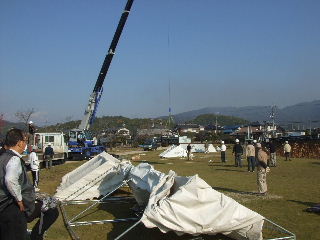 | 平成20年11月15日土曜日午前9時から実行委員会関係者が 集まり会場設営をしました。 婦人会関係者は、午前8時から幟等の組み立てをした後、公民館等で 手分けをしてお寿司作りをしました。 |