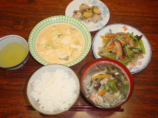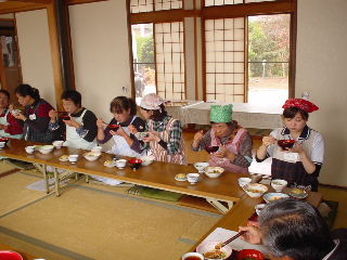 日(水)庄内コミュニティハウスで 男性を含めて21名参加で、高松アクティブホームの山本咲希管理栄養士を 迎えて開催しました。 献立は がん予防食の ① さつまいもと昆布の炊き込みご飯 ② 焼きさんまの香り漬け ③ かぶのおろし汁 ④ お茶蒸しパン でした。 今年度の教室生と栄養士の指導で、参加者皆さんが和気あいあいと楽しく 実習と会食をしました。 荒木三朗庄内学区連合町内会長も参加しされ、会話も弾みました。 食事に気をつけて、健康寿命を延ばしましょう。と締めくくりました。 |