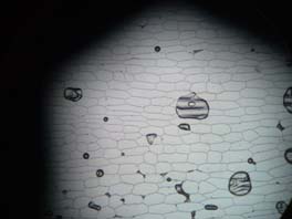 | タマネギの薄い皮 | サザンカの葉の気孔 |