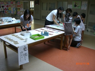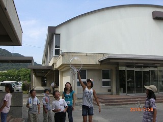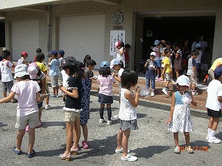 | 9時前には、子ども達が集まってきます、お母さん達も汗だくの応援です。 | |