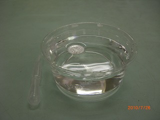 | 3.水に1円玉を浮かべて観察、洗剤を一滴垂らすと一瞬にして沈むことを観察 | |