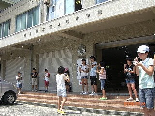 | 夏休みの暑いさなか、小学校理科室に130人の子ども達が集まった。講師は学区在住のK医師、サポートには3人の元大学教授が顔を揃えます。PTAのお母さん達も、受付やら準備片付けなど、汗だくの応援です。今回は、参加者が多いので3班に分け、一部は同時進行です。元先生も久し振りに腕を振います。 | |