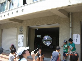 | シャボン玉づくりで盛り上がります。 みんなでシャボン玉をいっぱい作って観察しました。 |