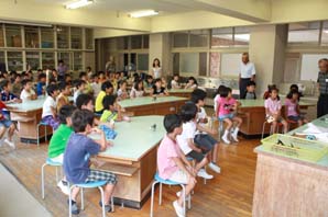 | 多くの方が参加してくださるので、低学年と高学年とクラスを分け、理科室、体育館と生活科室、体育館で開催した。小学校の水泳教室もあり、午後も開催した。 |