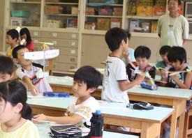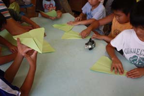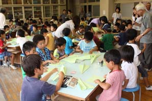 A組 折り紙飛行機の製作(1〜3年生、65名)(9:00〜11:00) |