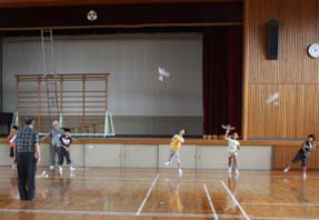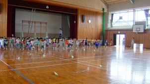 | 5. 競争:体育館で、遠くまで飛ばす競争と長い時間飛ばす競争をさせた。 |